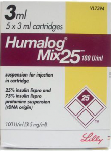 Humalog Mix 25 Cartridge Drug Info (Pack with 5 cartridges x 3 mL each)