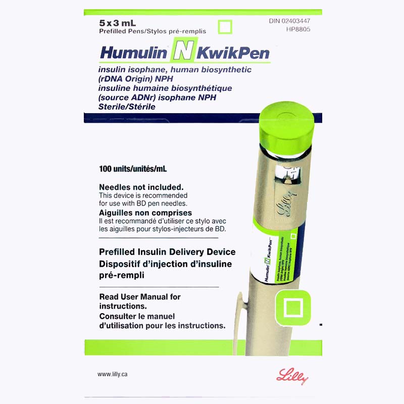 Humulin N KwikPens are pre-filled, disposable insulin pens designed to make it easier for you to inject your insulin doses. It is filled with Humulin-N, which is a brand name for NPH insulin, otherwise called insulin isophane. It is considered an intermediate-acting insulin which has a relatively slow onset and a long duration of action that lasts up to 24 hours.
