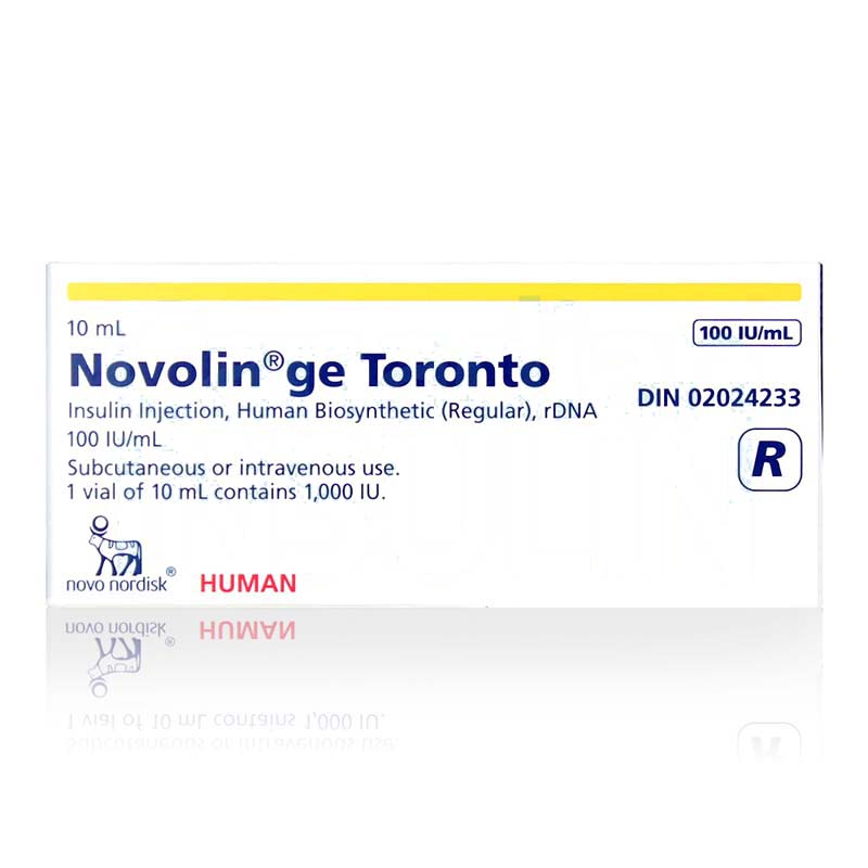 The main active ingredient in Novolin GE Toronto vials is Regular insulin for injection. It is a biosynthetic human insulin bioengineered using baker’s yeast that is similarily identical to naturally occurring human insulin. The vials come in 10 mL size dosages.